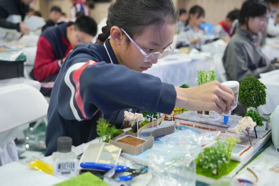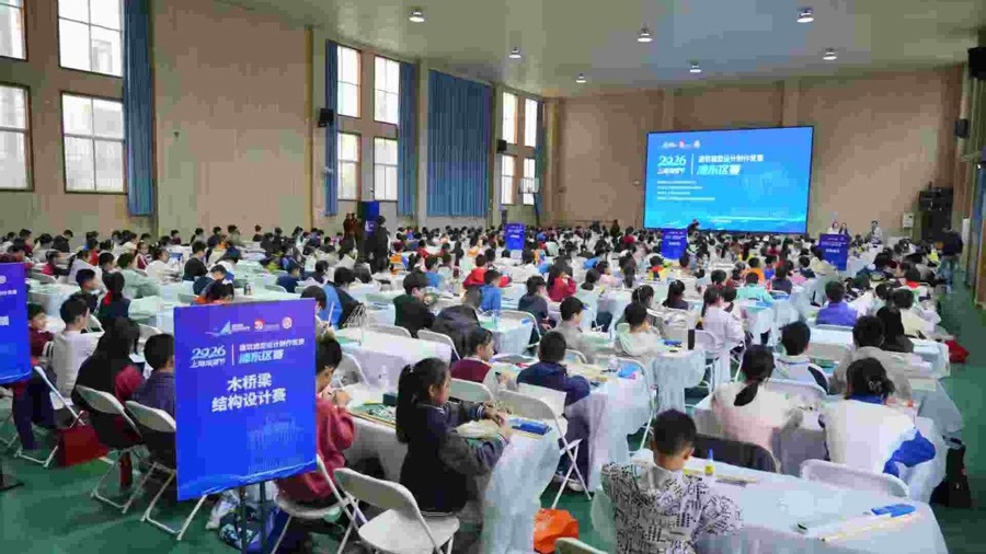 为丰富青少年科技文化生活,培育科创实践精神与工匠精神,由浦东新区青少年活动中心主办、东明路街道办事处协办的2026上海模型节建筑模型设计制作竞赛浦东区赛今天在上海市三林中学北校举行。